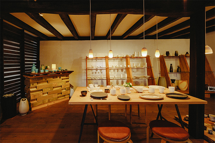 1622年創業の400年続く信楽焼窯元『明山』が運営するOgama。「陶を通した、暮らし・文化を発信する場所」として、明山のオリジナル作品や地元・信楽の作家の作品が並ぶギャラリーをはじめ、陶芸教室、カフェなどを多彩な機能を併設しています。