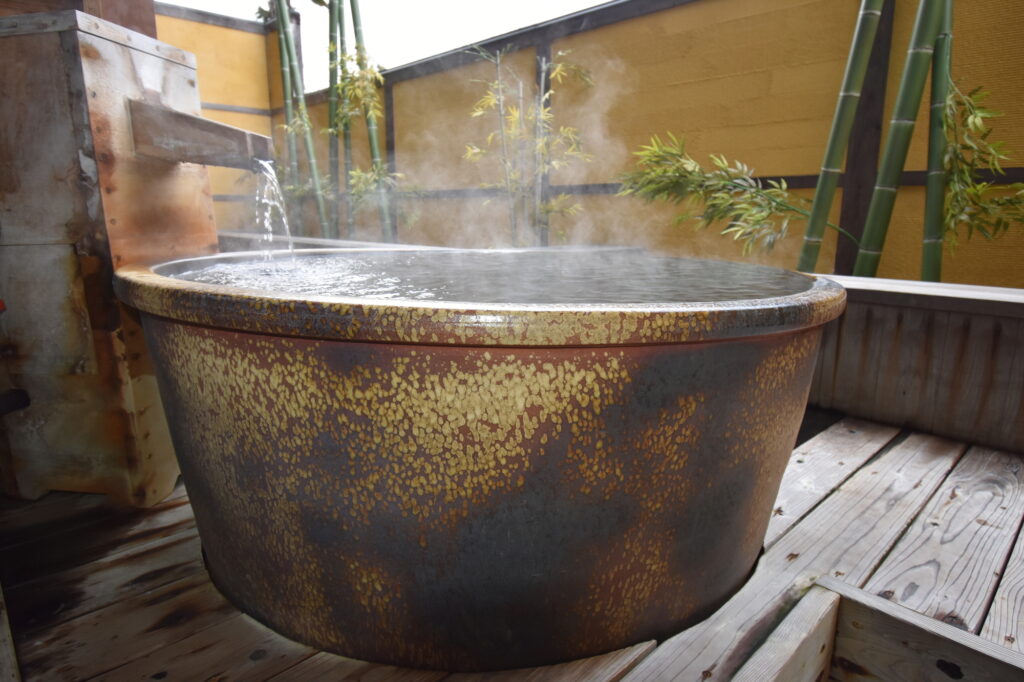 信楽焼の最大の特徴は、他の産地にはない粗い土質にあります。そのざらざらとした手触りと質感、耐火性の高さ、可塑性(力を加えたときに戻らない性質)の高さにより、大物や肉厚の作品を造るのに適しています。そのため、旅館や温泉施設で浴槽として使われていることも多く、滋賀県内の温泉やスーパー銭湯に行くと、しばしば信楽焼を使った陶器風呂に入ることができます。