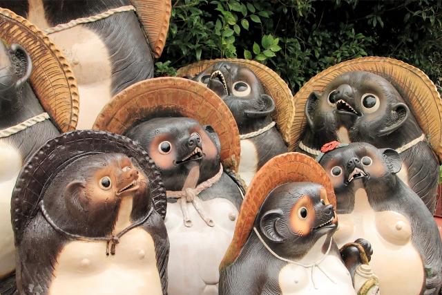 さまざまな表情のたぬきたち。ぽっちゃり恰幅のいいたぬきにスリムなたぬき、ウィンクしているたぬき、目を細めて笑っているたぬき。寝そべっていたり踊っていたり、頭を右に傾けたり左に傾けたりと、1つ1つ個性的な表情やポーズをとったたぬきに出会うことができるのも信楽の魅力のひとつ。