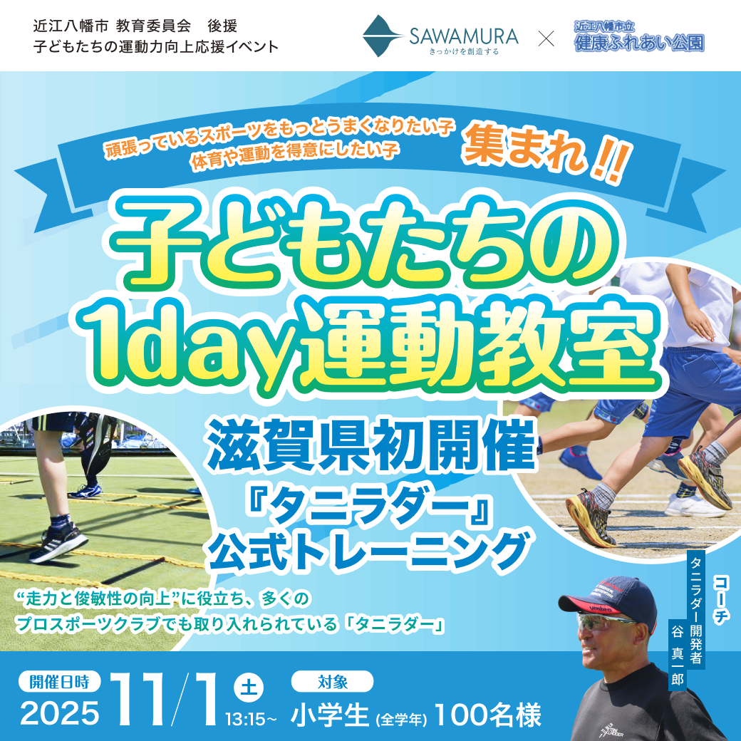 11/1(土)、滋賀県大津市の近江八幡市立健康ふれあい公園で「子どもたちの1day運動教室」を開催します。