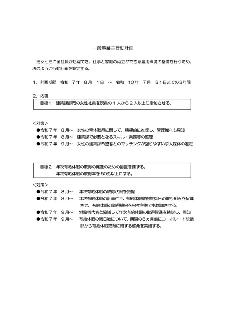 女性活躍推進法に基づく一般事業主行動計画を更新しました
