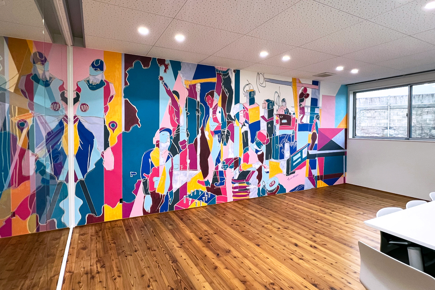 元は真っ白な壁でしたが、未来へ向かうエネルギーに満ちた空間へと生まれ変わりました。