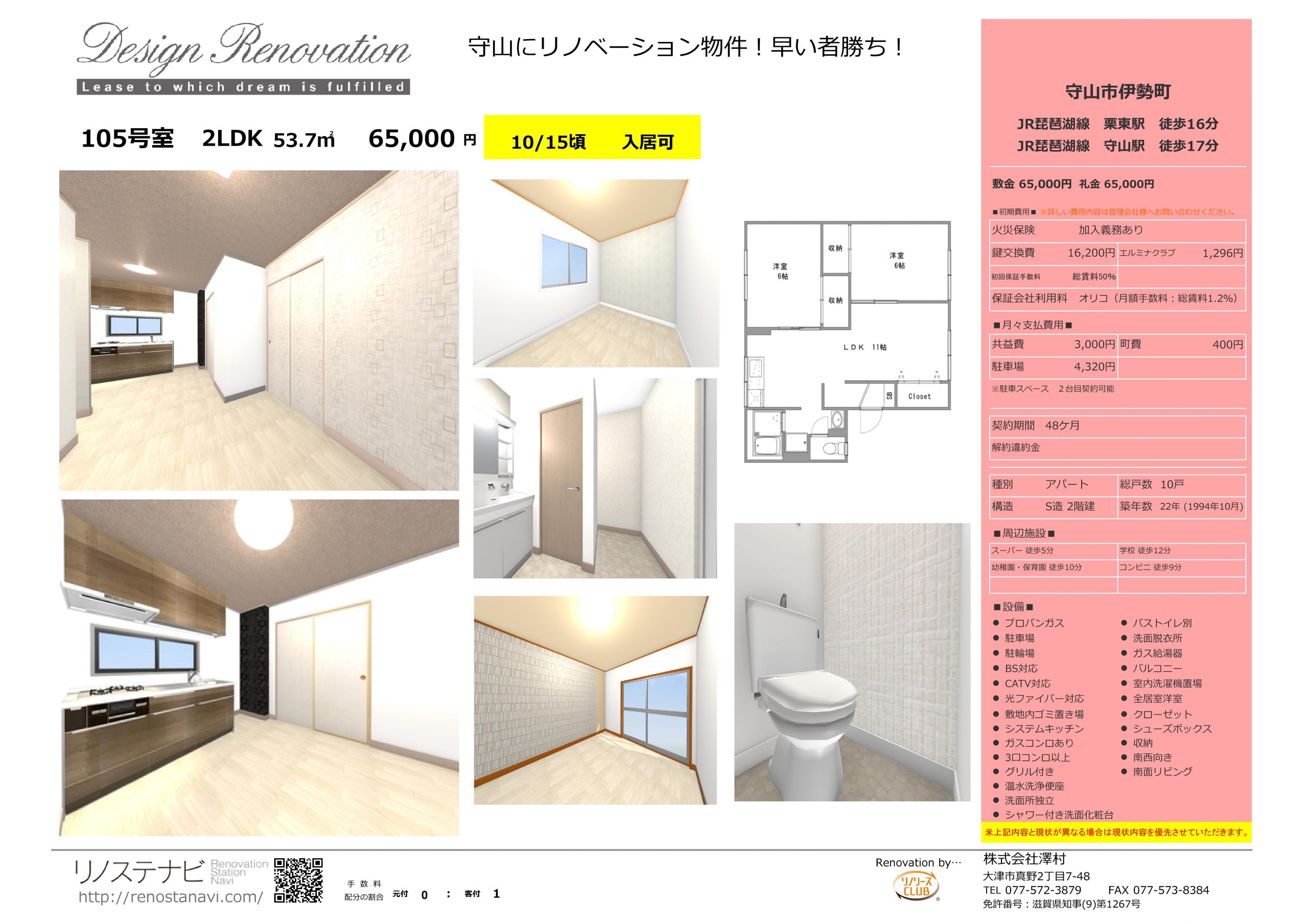 Aリノベーションから入居サポートまで含めたパッケージ価格となっており、平米5~7万円に設備交換費用を加えた金額が目安となります。(物件の現状・間取りによって変わりますので、お見積もりを提出させていただきます)