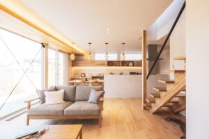 自然エネルギーを季節ごとに最適な状態で室内に取り込み循環させることが出来るパッシブ設計のモデルハウス。北欧×日本のインテリアスタイル「ジャパンディ」を取り入れた、ナチュラルで落ち着きのある空間をコーディネートした。