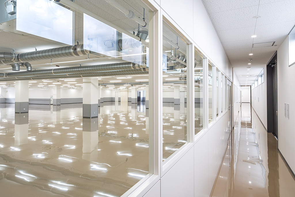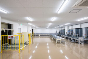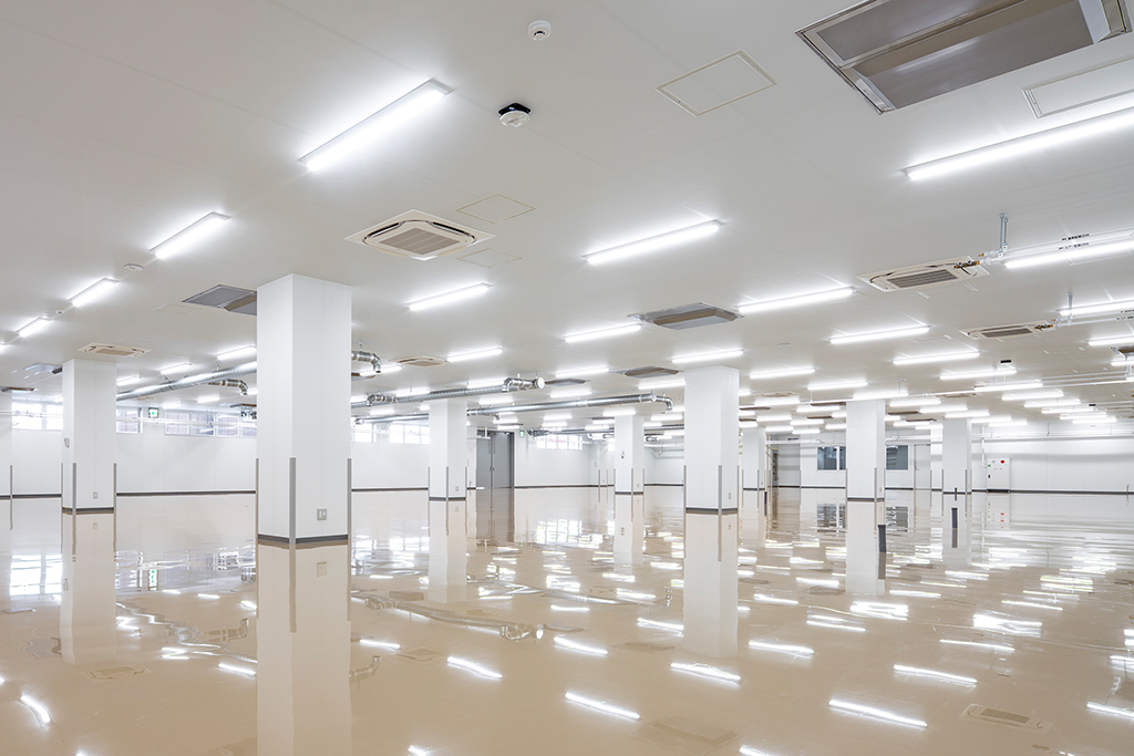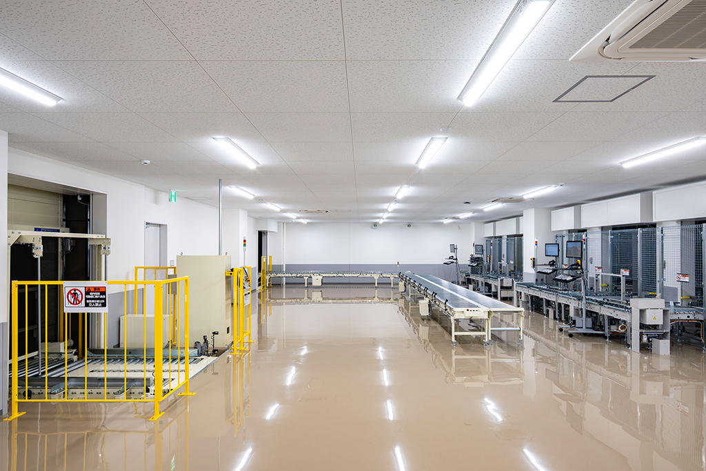 製造・保管・事務・休憩という異なる用途を複合させながら、製品と人の動線を明確に分離し、業務効率の最大化を図った。 生産エリアにはAGV、自動ラック倉庫、コンベアなどの自動化設備を導入。設備導入における複雑な調整をプロジェクトチーム全体で行い、スムーズな運用が可能な生産ラインを構築した。