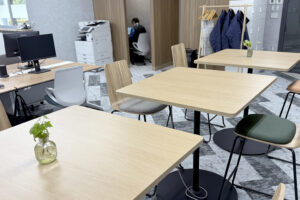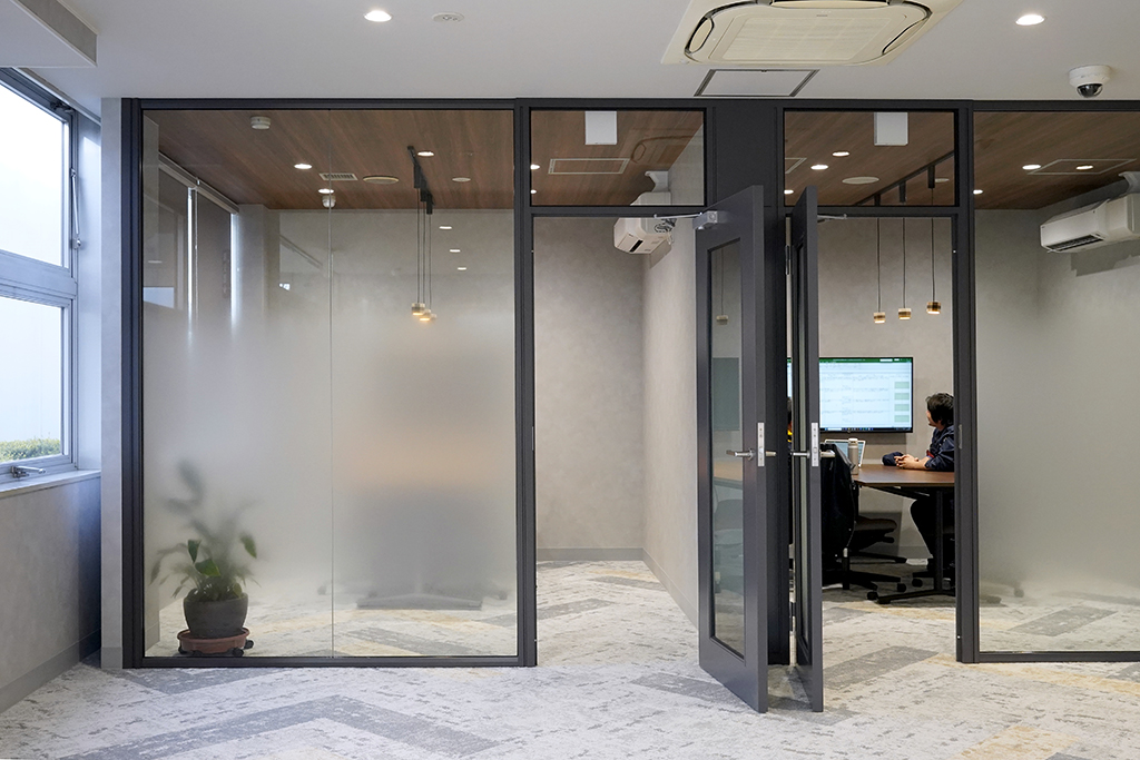 オフィスにはフリーアドレスを導入し、現場社員や大阪本社からの出勤者も気軽に利用できる環境を整えた。用途や距離感に応じて使い分けられる空間構成により、自然なコミュニケーションが生まれるきっかけにもなった。